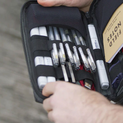 フィールドケースはラインアップの中で一番のコンパクトサイズ。耐候性があり、コンパクトながらも収容力もあり多機能です。出先での制作に便利。左右両利き用。