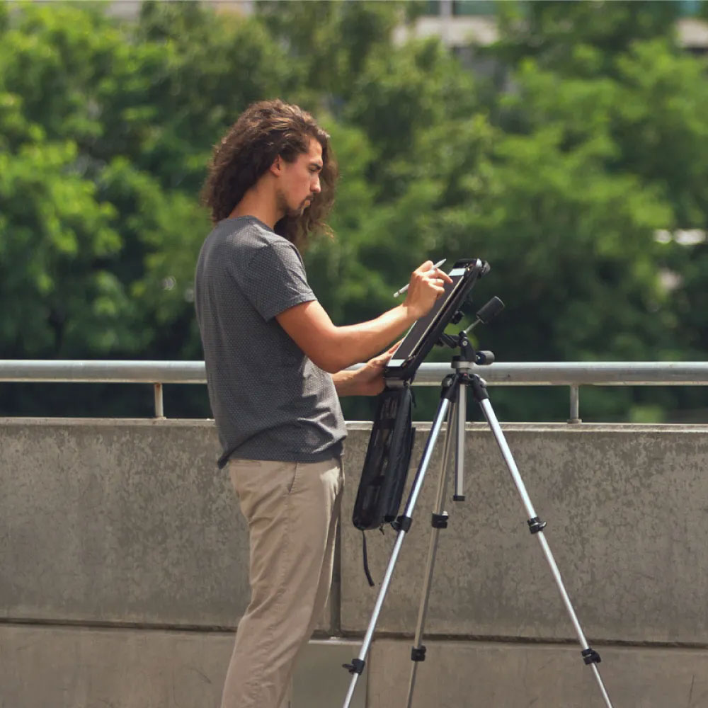 また、カメラの三脚を取り付けてイーゼルモード、バッグを画版のように使えるストリング(肩掛け)モード、机に広げてのスタディ(デスクトップ)モードなど場所やシチュエーションを選ばず制作できます。
