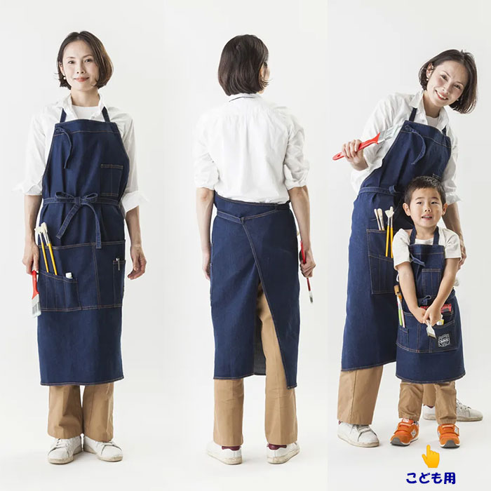 親子で着られるおしゃれなインディゴ染デニム生地を使用したエプロンが登場。